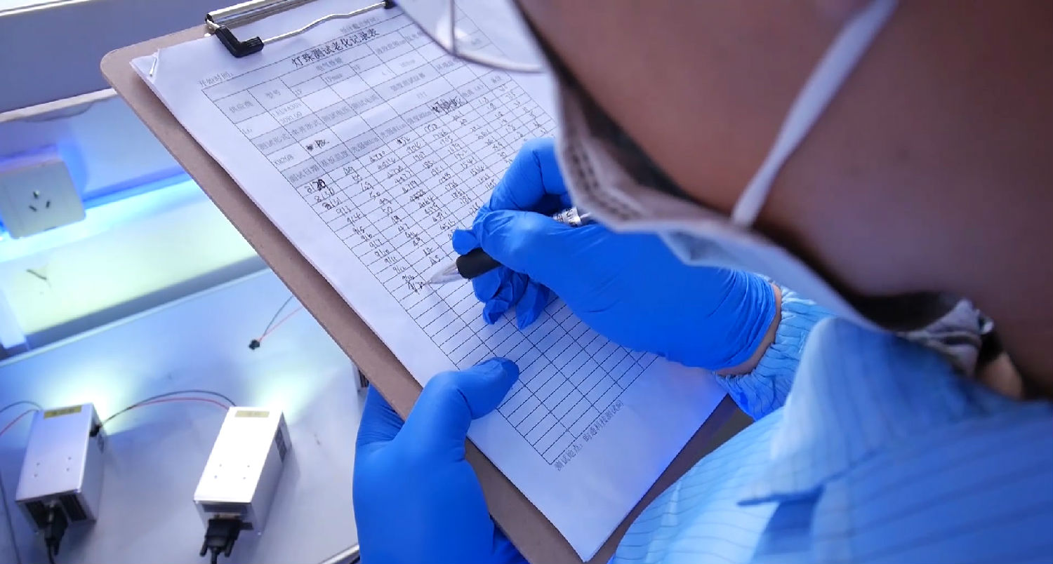 昀通科技研发人员做灯珠测试记录